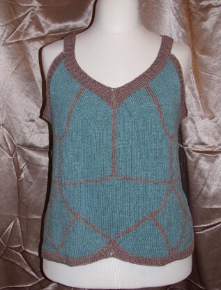 It is knitted flat in two contrasting colours and features a deep neckline on the back, making it a cool garment for hot summers. Available only in plus sizes.