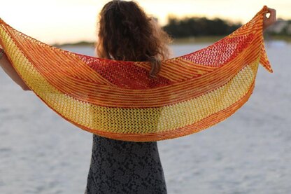 This perfectly-sized shawl uses short rows and lace to create dynamic color patterns across your work. The modular construction of this shawl makes it perfect for increasing or decreasing the size based on your yardage amount.