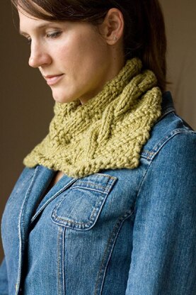 A simple, yet elegant neck warmer that can be easily modified into a full length scarf. The buttons are hidden on the underside of the fabric to show off the pretty, leaf like pattern. Bulky yarn makes this a very quick knit!