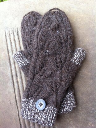 The leaf pattern is alternated on the left and right mitt to result in mirror-image patterns.