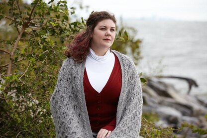 **Shown In:**Bare Naked Wools ‘Cabécou Brillant’, (375 yards/343 meters; 40% wool, 40% mohair, 20% silk; 4.06 oz/115 grams). 3 skeins in Poivre, size Small Stole.
