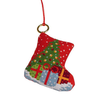 Permin Christmas Stocking Ornament Cross Stitch Kit - 7cm x 8cm
