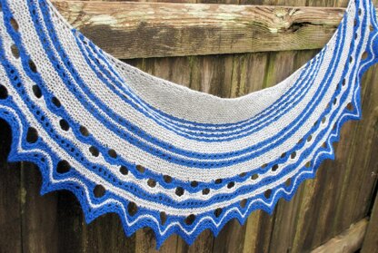 Persephone is a crescent shawl worked from the top down. Multiple yarn overs used in the edging create a big impact.
