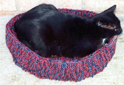 Finished size is 18” long and 14” wide. Makes a nice cozy bed for kitty, puppy or any small dog. Nice thick bottom base, then add the knitted thick sides for warmth and coziness. The pets will love it for their nap time! Uses 3 strands of worsted weight yarns held together, and knitting needles, US # 15. With thick yarns strands and large needle, this knits up quickly! Make an extra one for your neighbors pet too!