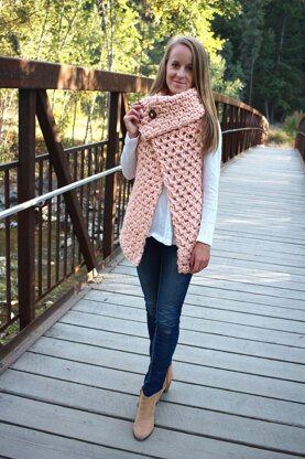 Materials • 16 mm crochet hook • Approximately 320(350, 385, 425, 470)(515, 565, 620, 680) metres of super bulky weight yarn, I recommend a roving (Samples done in: We Are Knitters The Wool, Salmon and Sugarbush Chill, Alpine) • Yarn needle • One large button (38mm-50mm diameter recommended)