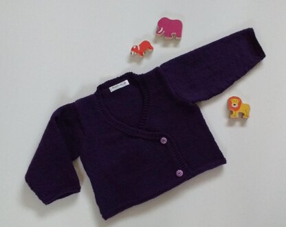 A simple, modern wrap over style cardigan that looks lovely over dresses, skirts or denims. Designed for one of my most lovely customers for her grandaughter. Knitted flat on 2 needles and then seamed before adding buttons and ties on the inside to fasten it.