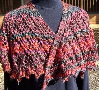 The final shawlette measures approx 18-inches from neck to hem; inner edge is 20-inches, while the outer edge measures approx 120-inches.
