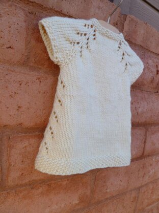 Top down construction, with sweet eyelet increases down the sides and on the bodice.