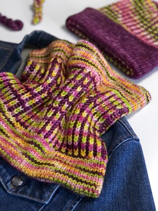Plain double knitting transitions effortlessly into basic brioche ribbing and back to double knitting again in this versatile, reversible cowl design, which pairs perfectly with my Niefling hat!