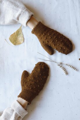 The cuff is knit in stocking stitch, folded and embellished with a picot edging and the hand features a cute bobble pattern finished with a round top, perfect for beginners and experienced knitters alike.
