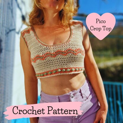 The Pico Crop Top pattern is a fun and cute tee featuring zigzags and bobble stitches and endless colour possibilities!