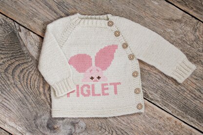 This beginner-friendly pattern helps you create a cozy, top-down baby cardigan with an adorable Piglet embroidered on the front. The cardigan is worked in one piece from the neckline down, with raglan shaping and a charming asymmetrical front closure along the left raglan line. The pattern includes row-by-row written instructions, making it perfect for beginners or knitters who want step-by-step guidance. You can print it and check off each row as you go! You’ll begin with neckline shaping using short rows, continue with raglan increases, work the sleeves flat, and then finish the body.