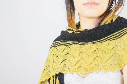 The Pikorua Shawl is a top-down asymmetrical triangular shawl, worked in alternating sections of garter stitch and simple lace, finished off with a braided lace stitch pattern.