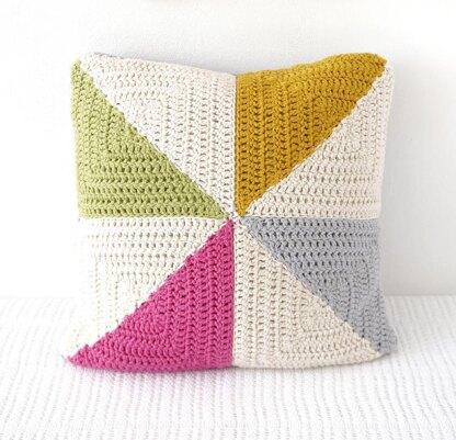 This delightful and colourfully modern Pin-wheel design is easy to make and will brighten up any seat or room. The pattern includes full, clear instructions and lots of photos on how to make this Pin-wheel cushion cover and also includes a tutorial on how to change colour yarn. The cushion cover does have a opening at the back so you can insert the cushion pad.