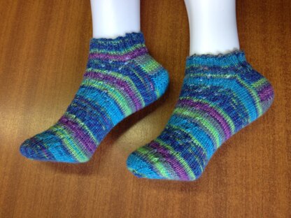 This is a knitting pattern for a short sock. It is knitted in the round with 4 ply sock yarn. The length of the foot can be altered to fit.