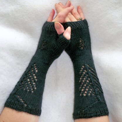 This is a fun pattern to make and works up quickly for anyone who is used to lace knitting. I have included contact information on the pattern if their are questions on construction or if you would like to show me how nice your new fingerless gloves look.