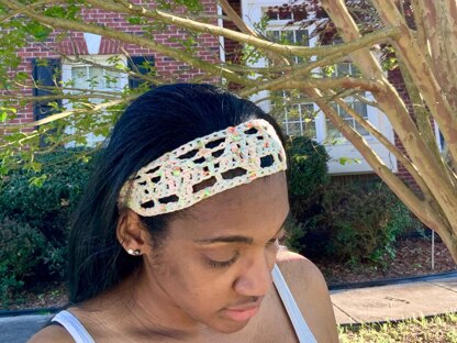 This headband pairs well with any outfit, but especially well with the Lacy Transformation Top.