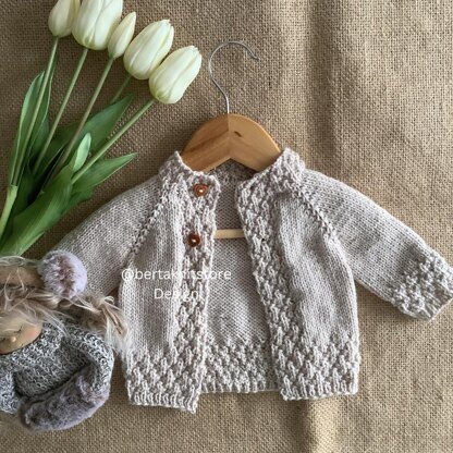Instructions on how to make this Cardigan Pattern. (PDF in English) Sizes available: 0-3 months, 3-6 months, 6-9 months, 9-12 months, 12-18 months, and 18-24 months. Experience level: Advanced Beginner. Yarn and needles used: DK weight yarn, 3,5 mm (4US) circular needles. Worked flat in circular needles. This is a digital file, not the actual finished item. You cannot resell this pattern but you can sell the finished item! ©Berta Knit Store All Rights Reserved.