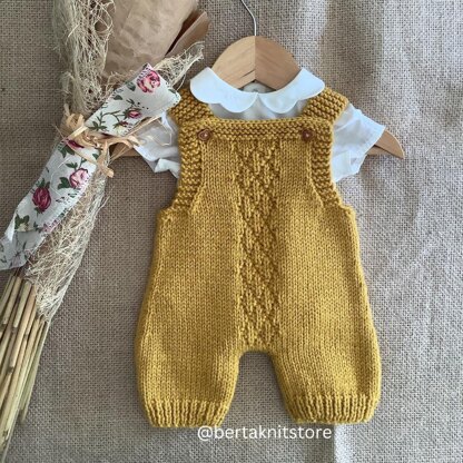 Step-by-step instructions with photos on how to make this Overalls Pattern - Instant Download. PDF Language: English. Sizes available: 0-3 months, 3-6 months, 6-9 months, 9-12 months, 12-18 months, 18-24 months. Experience level: Advanced Beginner. Yarn and needles used: DK weight yarn, 3.5 mm (4US) needles. Worked flat, bottom-up, seamed. Techniques: Cast on, Knit, Purl, Increases, Decreases, Cable Knit Stocking stitch, Garter Stitch, Cast off. This is a digital file, not the actual finished item. You cannot resell this pattern but you can sell the finished item! ©Berta Knit Store All Rights Reserved.