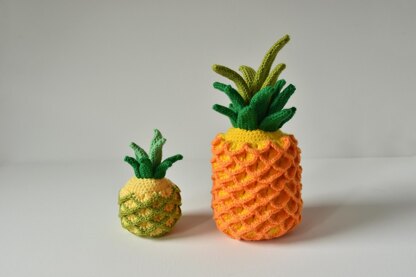 Look at these very very tasty, juicy pineapples! Now you can make your own set of pineapple with this clear and easy to follow crochet pattern. :) It also looks great as a kitchen decoration, or use it as toy food in a play kitchen. This set features crochet patterns for a large and a small pineapple.