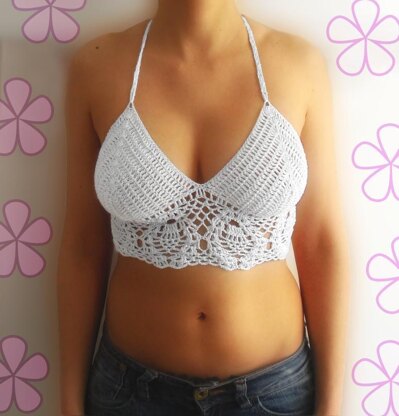 Beautiful crocheted crop top with pineapple motif and straps to tie around neck and back. Amaze everyone making this wonderful pattern!
