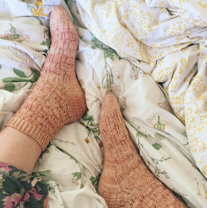 This is my favorite kind of sock to knit, but it wouldn’t be difficult to adapt this pattern to your favorite sock construction. Change out the heel, make a different toe, knit a different ribbing, even make them toe-up – the lace pattern will look nearly the same upside down!