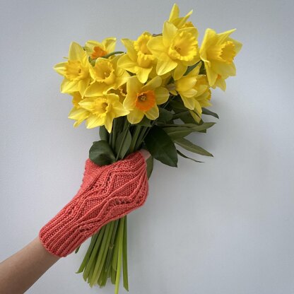 Travelling twisted ribs and eyelets adorn these classy mitts. The thumb gusset has increases on the central line, to add a bit of bias interest. Why not knit the twisted cuffs extra long for added coziness, or try contrast colours for the ribbed sections?