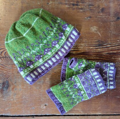 This is a pattern for a pair of muffatees and beanie style hat. Both are worked from the bottom up and in the round, using the stranded colourwork technique.