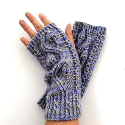 Beautiful raised cable work adorn these simple knitted gloves. Knitted in the flat with no shaping allows you to concentrate purely on the cables.
