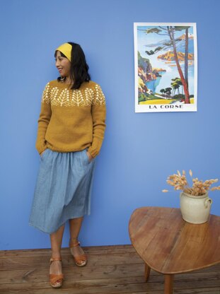 YARNS DE RERUM NATURA Gilliatt (100% wool, 250m / 145yds per 100g) Doré (C1): 3 (4, 4, 5, 5, 6, 6, 7, 7) skeins Sel (C2): 1 skein Or about 750 (830, 920, 1040, 1125, 1280, 1370, 1490, 1590)m / 820 (910, 1000, 1140, 1230, 1400, 1500, 1630, 1740)yds C1 and 80 (80, 100, 120, 125, 140, 150, 155, 170)m / 90 (90, 110, 130, 140, 150, 165, 170, 185)yds C2.
