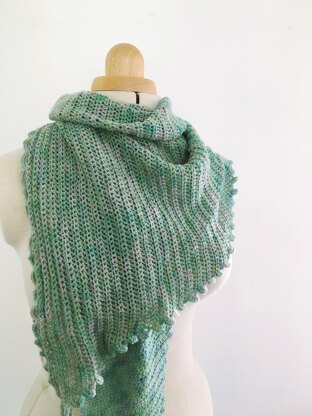 Piper is an assymetric shawl, worked from side to side, increasing as you go. It uses 2 x 100g skeins of sock yarn.