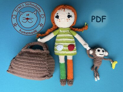 With yarn length 160m/50g this doll is about 25 cm high.