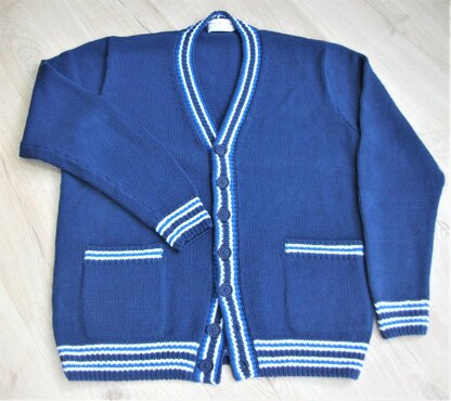 A distinctive, preppy cardigan with classic fit. This design is all in stocking stitch with the emphasis on the striking edgings.