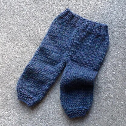 Quick and easy trousers for a baby knitted in chunky yarn.