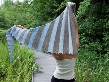 Nothing beats a simple on-the-go knitting project and this bold, elongated triangle will fit both your travel bag and your sense of fun. Worked in addictive short-row repeats that become successively smaller, this soothing project in three sizes (petite/medium/tall) is a perfect travel companion—and fun to wear when it’s complete. Use one solid or natural heathered yarn and one gradient colorway to achieve the effect pictured here or mix a variegated yarn with a solid for an overall color pattern—a great use for those stray “impulse buy” skeins.