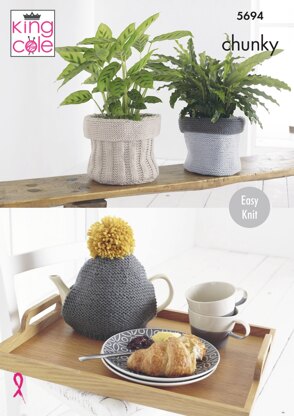 Plant Pot Sacks, Tablet Cover, Tea Cosy & Bag Knitted in King Cole Ultra-Soft Chunky - 5694 - Downloadable PDF is a Intermediate Knitting pattern by King Cole, available as a Downloadable PDF and includes instructions in English. Super fun to make, this pattern could be your next masterpiece!