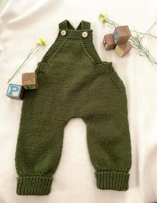 The overalls will last through significant growth, as the cuffs can be unfolded to extend the leg length, and the shoulder straps are knitted with extra length, so the buttons can be moved to lengthen the body.