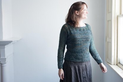 Pleasant St begins at the bottom of the back and is worked over the shoulders down the front. Stitches are cast on and bound off to shape the sleeves and neck. The side and sleeve seams are then sew up and stitches for the cuffs are picked up. I really enjoy knitting this type of sweater construction!