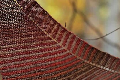 Perfect for long colour change and variegated yarns used striped against itself, two complementary semi-solids, or pair a solid with a multi. The wrap uses simple garter stripes to showcase the beauty of your chosen yarn and colours.