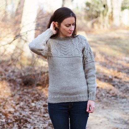 The Pleinmont Guernsey is worked in the round from the bottom up to the underarms. The back and front are worked flat and separately, then sewn together at the shoulder seams. The sleeves are worked separately in the round and sewn to the body. Stitch patterns are written and charted.