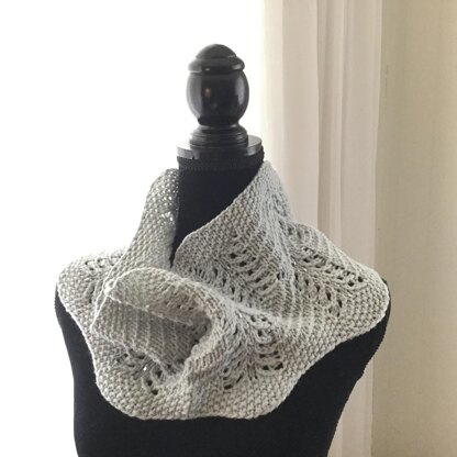 This is a wonderful, textured cowl. The fabulous worsted weight yarn from YOTH Yarns is 100% domestic Rambouillet wool. It's springy and great to knit with. I chose their interested, soothing color of Oyster. It has an ever so slight blue tinge and the grey is soft as goose down.