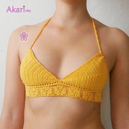 Plunge bikini top with lacy tulip design PDF Crochet Pattern. Halter low cut bikini top with