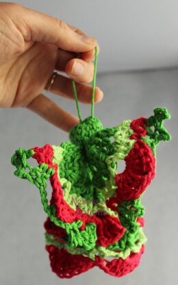 I used 4 seasons Flinders 100% cotton 8 ply in the following quantities: Colour A Green (1071) 9 g (21 m, 23 yds) Colour B Lime (2005) 4 g (9 m, 10 yds) Colour C Claret (1064) 6 g (14 m, 15 yds)