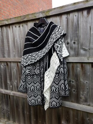 The Pointless Shawl uses narrow garter stitch stripes, simple lace and a striking mosaic border to create a graphic two-colour asymmetrical shawl that will hold your interest throughout. It’s worked starting from the lace point, with both borders knitted as you go; so, there’s minimal finishing, no picking up stitches, and the length can be adjusted easily to suit your taste. Choose fingering-weight yarn in a natural fibre – wool, silk, linen or cotton – for crisp blocking and best results. The pattern is charted.
