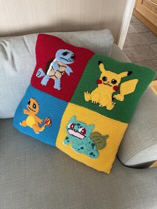 Knit your own pokemon cushion! Featuring 4 of your favourite pokemon, this knitting pattern will give you all the info you need to make this for yourself. For beginner to intermediate level, my pattern is written with numbered rows and photos along the way to help. Making it super easy to follow. Everything is knitted on straight needles (4mm) using simple stitches (knit, purl, kfb, k2tog etc.) Your finished product will be a 50cm x50cm cushion that you can wow your friends with!