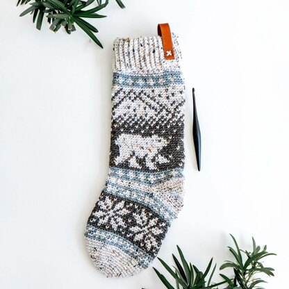 The Polar Bear Stroll Crochet Stocking is available as part of the course “Briana K & Marly Bird’s Prancing Through The Holidays Make Along”, but is available for individual purchase as well.