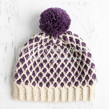 Crochet hooks 4.25mm and 5mm, tapestry needle, stitch marker, 65 (65, 85, 85, 85)mm/ 2 ½ (2 ½, 3 3/8, 3 3/8, 3 3/8)'' pom-pom maker.