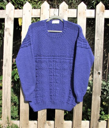 A gorgeous unisex gansey style sweater. Named after the beautiful fishing village of Polperro on the south Cornish coast. The abundance of traditional stitchery in this design will satisfy the keen knitter - a great garment for all seasons too. This sweater has drop shoulders and the attractive yoke border pattern is repeated across the top of the sleeves.