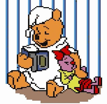 Knitting chart of Pooh and Piglet at bed time.