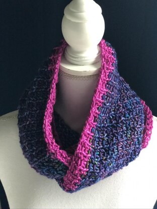 Ever find a colorway you just love? For me, it’s Spectrum By Mad Tosh. I love it. It speaks to me and I have it in almost every weight. I love designing with it (check out my Coming Home cowl pattern if you don’t believe me) and Death By Elocution was the perfect compliment to make things really stand out. This is a simple cowl knit in the round. Once you get the hang of the pattern, you can listen to a book or watch T.V. while knitting it. The colors are so fun to work with and make you eager to finish the project. I hope you enjoy this pattern as much as I enjoyed creating it!
